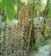 列當(dāng)屬一種根寄生植物,列當(dāng)種子在土壤中接觸到向日葵的根時(shí),受根部分泌物的刺激而萌發(fā),形成吸根(盤)深入到寄主根部吸收營養(yǎng)。同時(shí)在根外發(fā)育成膨大部分,向上形成花莖,向下形成大量吸盤,每株可形成5-10萬粒種子。每年在7月上旬陸續(xù)萌發(fā)出土。重茬和低溫地發(fā)病較重。一般被列當(dāng)寄生后的向日葵,株高降低10%,莖粗減少4.4%~33.3%,花盤直徑縮小23%~36%。種子飽滿度降低36.4%。