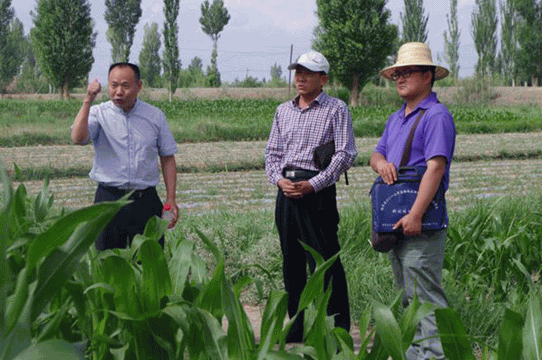 6月20日,正值試驗示范田灌頭水,成都華宏調理劑生產公司負責人李智強總經理趕赴張掖,與我站科技人員親臨現場,指導農民正確施用土壤調理劑。在現場,李智強認真詢問當農民在鹽堿地改良方面所采取的方法,詳細了解小麥、玉米、蔬菜等不同作物在鹽堿地的生長狀況、產量情況,并重點介紹了“施地佳”調理劑的功能、原理、效果以及施用方法,受到當地農民的熱情歡迎。途中,李智強向市、縣科技人員全面介紹了近年來“施地佳”在全國不同生產區(qū)域改良鹽堿地的成效,特別是在新疆建設兵團滴灌生產田的應用效果,交流了當地改良鹽堿地的科學方法,為我市這方面工作提供了有益可借鑒的經驗。