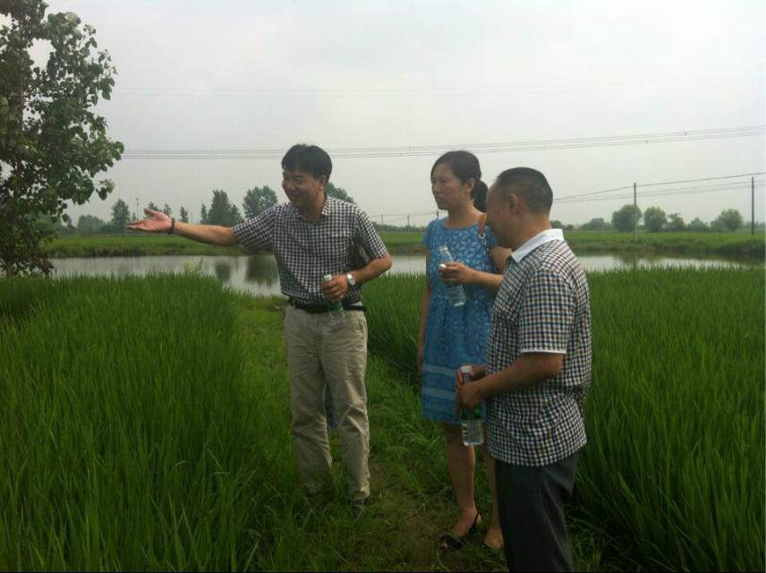 2014年7月7日,到湖北省孝南區(qū)農(nóng)業(yè)局,和劉局長(zhǎng)、陶站長(zhǎng)察看公司“施地佳”土壤調(diào)理劑連續(xù)3年的示范地