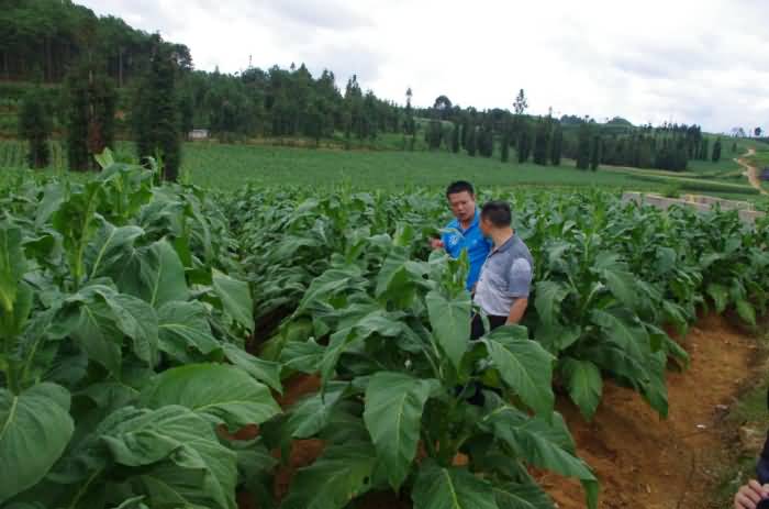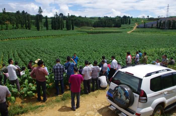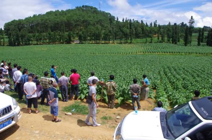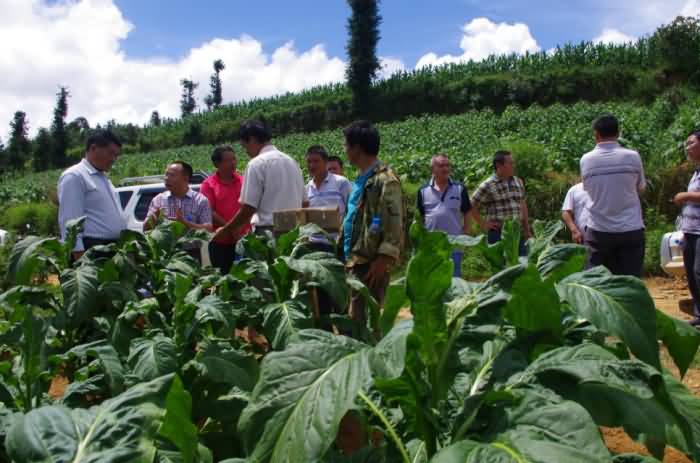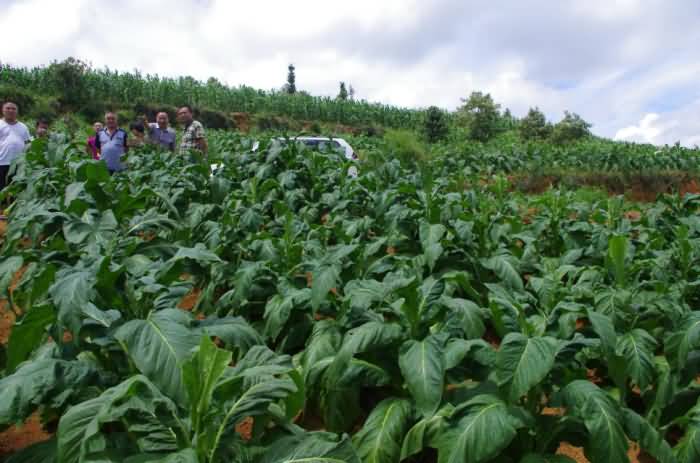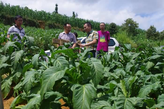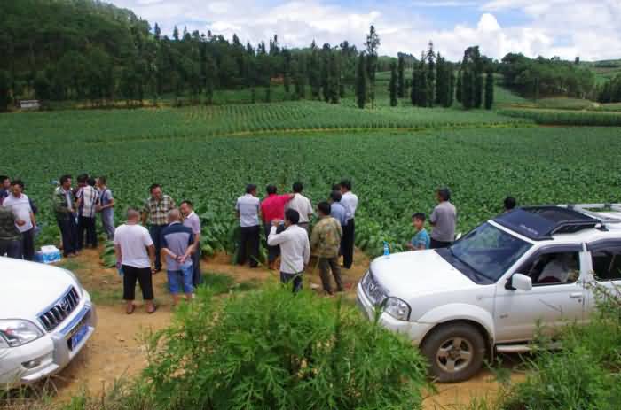為了解自己的產(chǎn)品對酸化土壤的改良效果和產(chǎn)品質(zhì)量因素,成都華宏生態(tài)農(nóng)業(yè)科技有限公司總經(jīng)理李智強(qiáng),先于2014年4月親臨云南省麻栗坡縣(中越邊境縣)的試驗(yàn)示范地,在當(dāng)?shù)赝练屎蜔熆撇块T的主持下,召開使用示范現(xiàn)場會,在他們的引領(lǐng)下,實(shí)地指導(dǎo)用戶使用“施地佳”土壤調(diào)理劑。因效果明顯,在當(dāng)?shù)責(zé)熆撇块T的建議和邀請下,李總又于7月19日,驅(qū)車趕到云南麻栗坡縣參加當(dāng)?shù)責(zé)熆撇块T組織的效果現(xiàn)場會,并與煙農(nóng)們進(jìn)行了廣泛的交流。李總看見自己開發(fā)的產(chǎn)品讓煙苗長得枝粗葉大,再大的勞苦也被拋在了腦后。