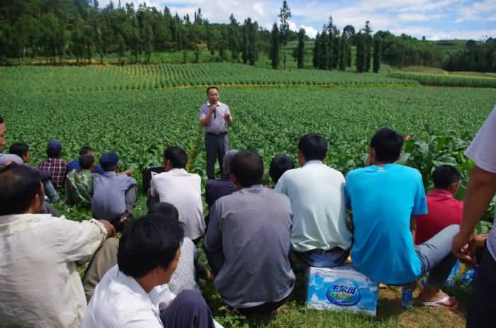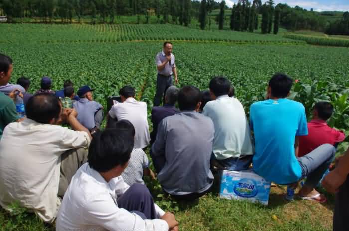 煙科院專家張曉海教授在給煙農(nóng)介紹煙科院連續(xù)三年使用我公司產(chǎn)品的實(shí)際效果