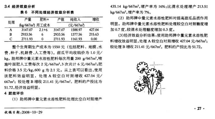 《新疆農(nóng)業(yè)科技》2008年第6期 “助邦”牌中量元素水溶性肥料在甜瓜上肥效試驗(yàn)總結(jié)