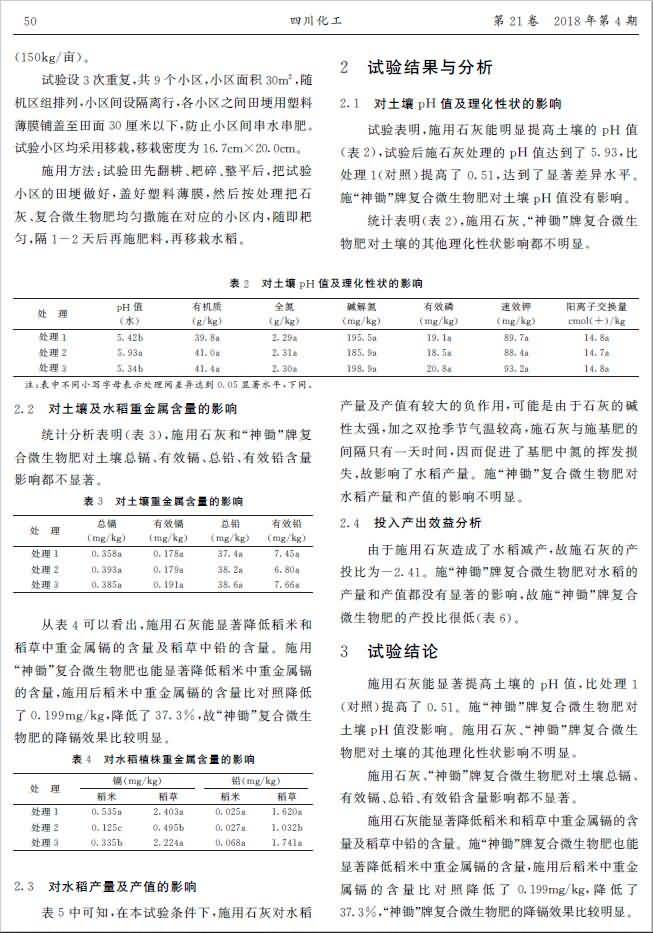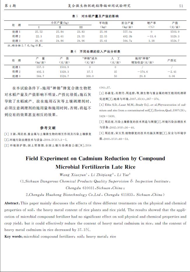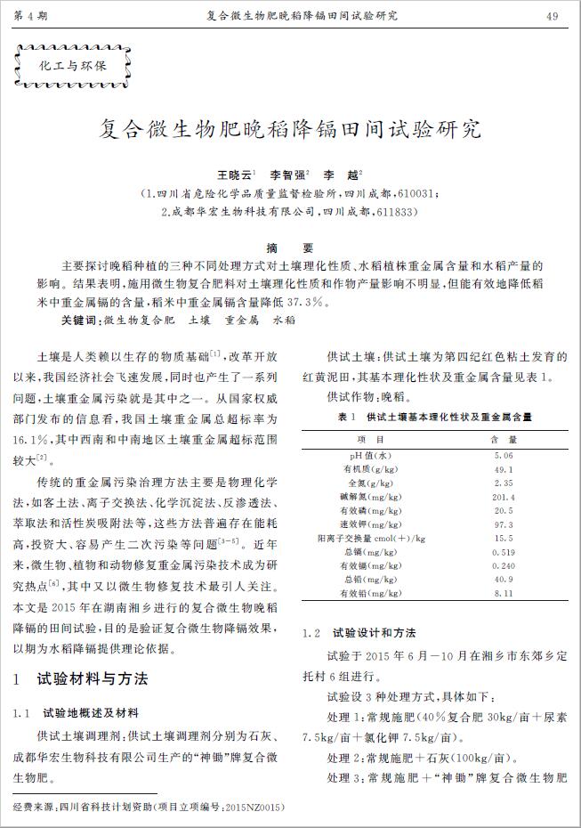 復(fù)合微生物肥晚稻降鎘田間試驗(yàn)研究